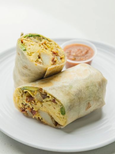 Signature breakfast and brunch dishes hot out of the kitchen including breakfast burritos, scrambles, traditional breakfasts, pancakes, breakfast sandwiches